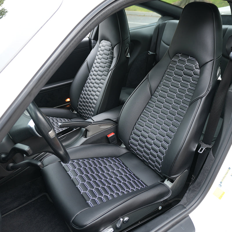 Our seat covers are easy to clean. Simply wipe them with a damp cloth or use our recommended cleaning products available on our website. Avoid harsh chemicals or machine washing to protect the material and stitching.